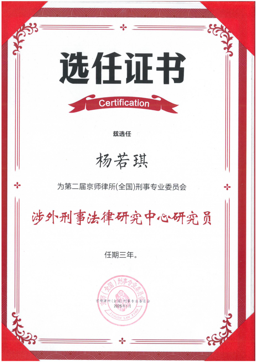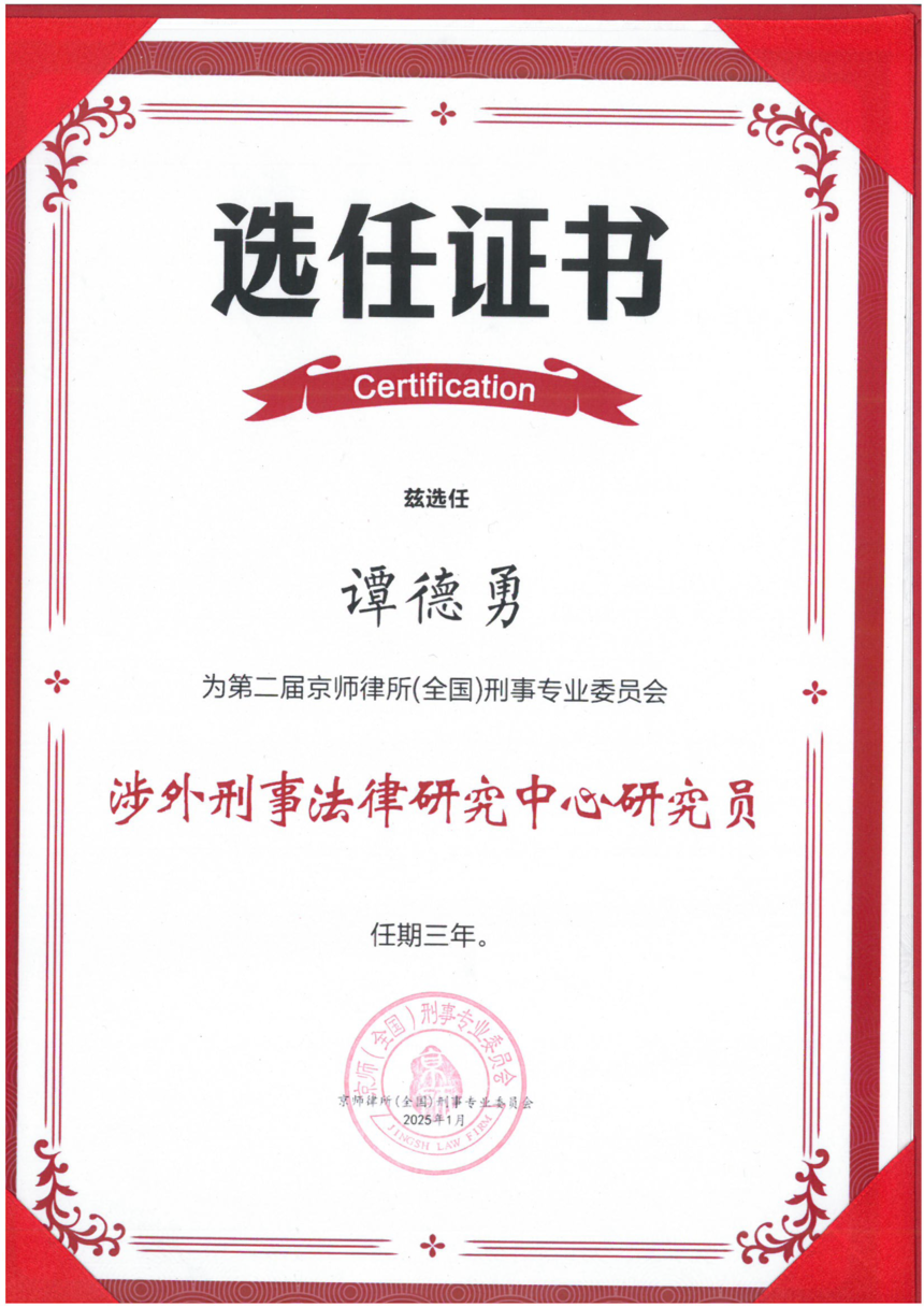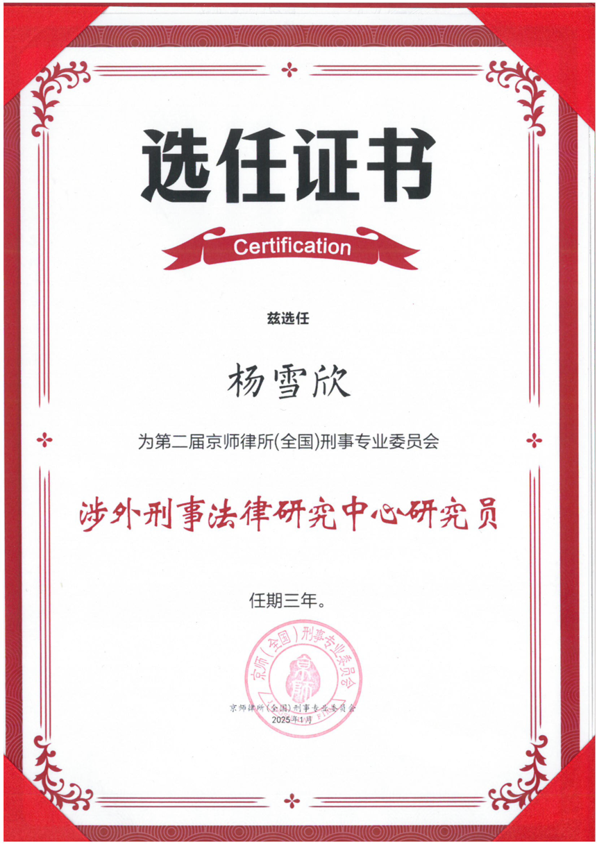 喜讯 | 京师中山律所多名律师荣任京师(全国)刑委会涉外刑事法律研究中心研究员!![]() 热烈祝贺北京市京师(中山)律师事务所黄玲律师、杨雪欣律师、谭德勇律师、古凤嫣律师、杨若琪律师凭借专业的涉外刑事法律功底与丰富的实务经验,成功当选第二届京师律所(全国)刑事专业委员会涉外刑事法律研究中心研究员。